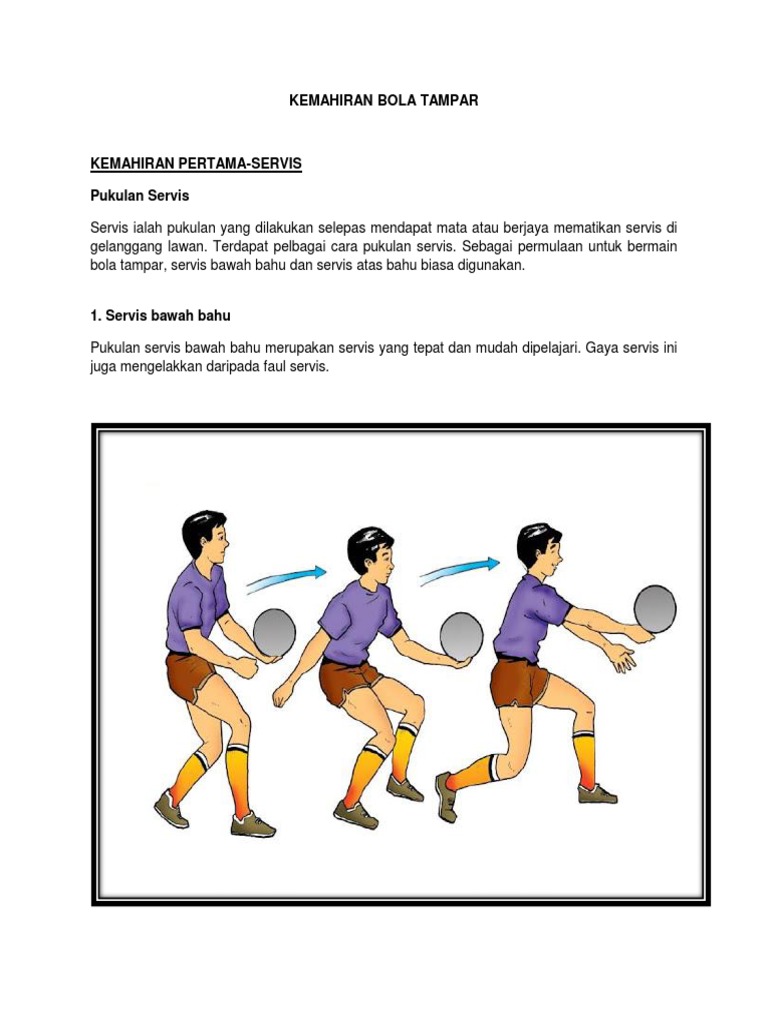 . Bola tampar adalah sukan menyeronokkan yang mudah dipelajari dan boleh dimainkan di gimnasium di pantai atau di rumput. Sebagai permulaan untuk bermain bola tampar servis bawah bahu dan servis atas bahu biasa digunakan. Terdapat pelbagai cara pukulan servis.